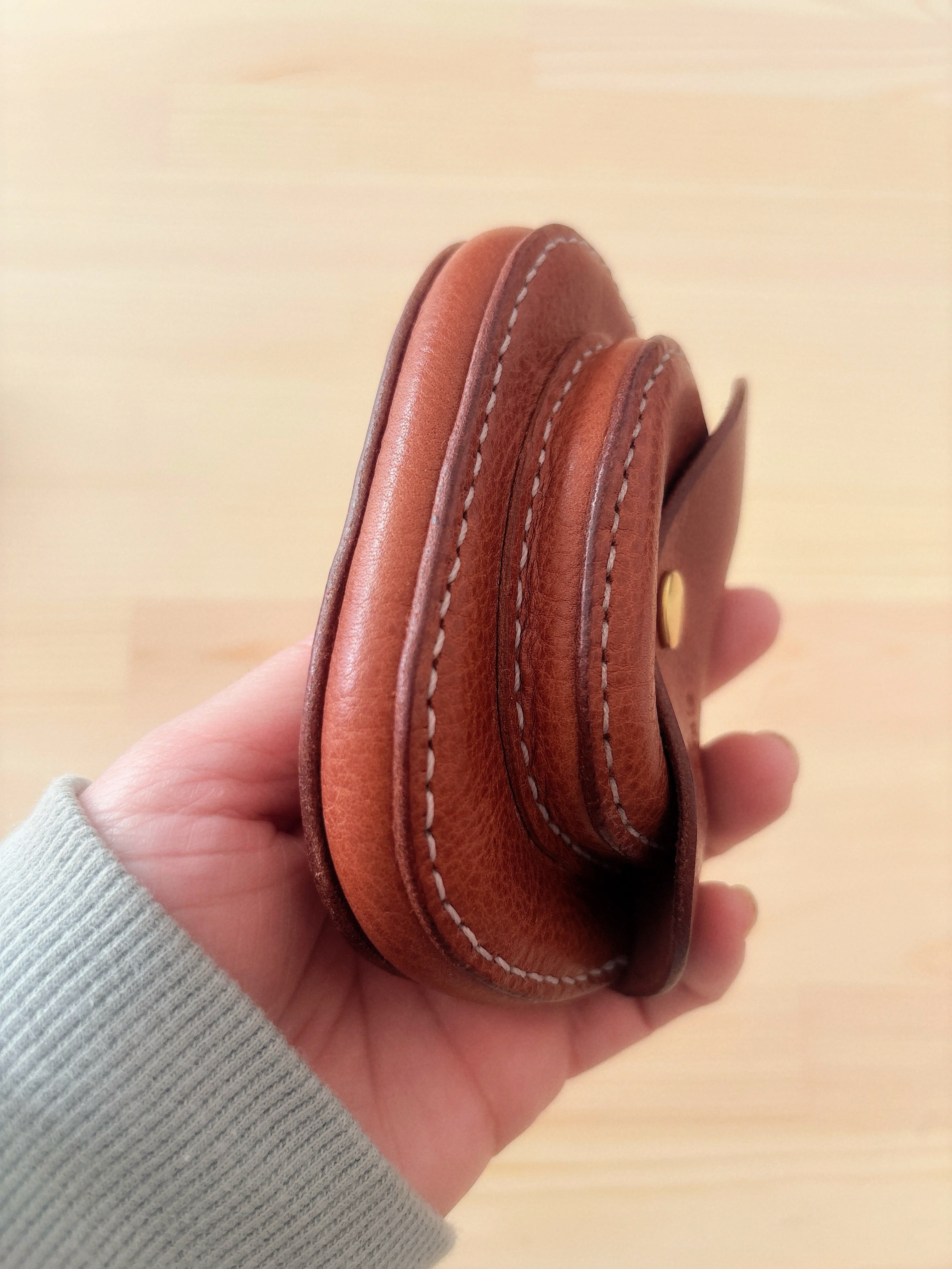 優しい丸みで手に馴染むミニウォレット。コインケースサイズではあるものの、実はカードもお札もたっぷり入ります。