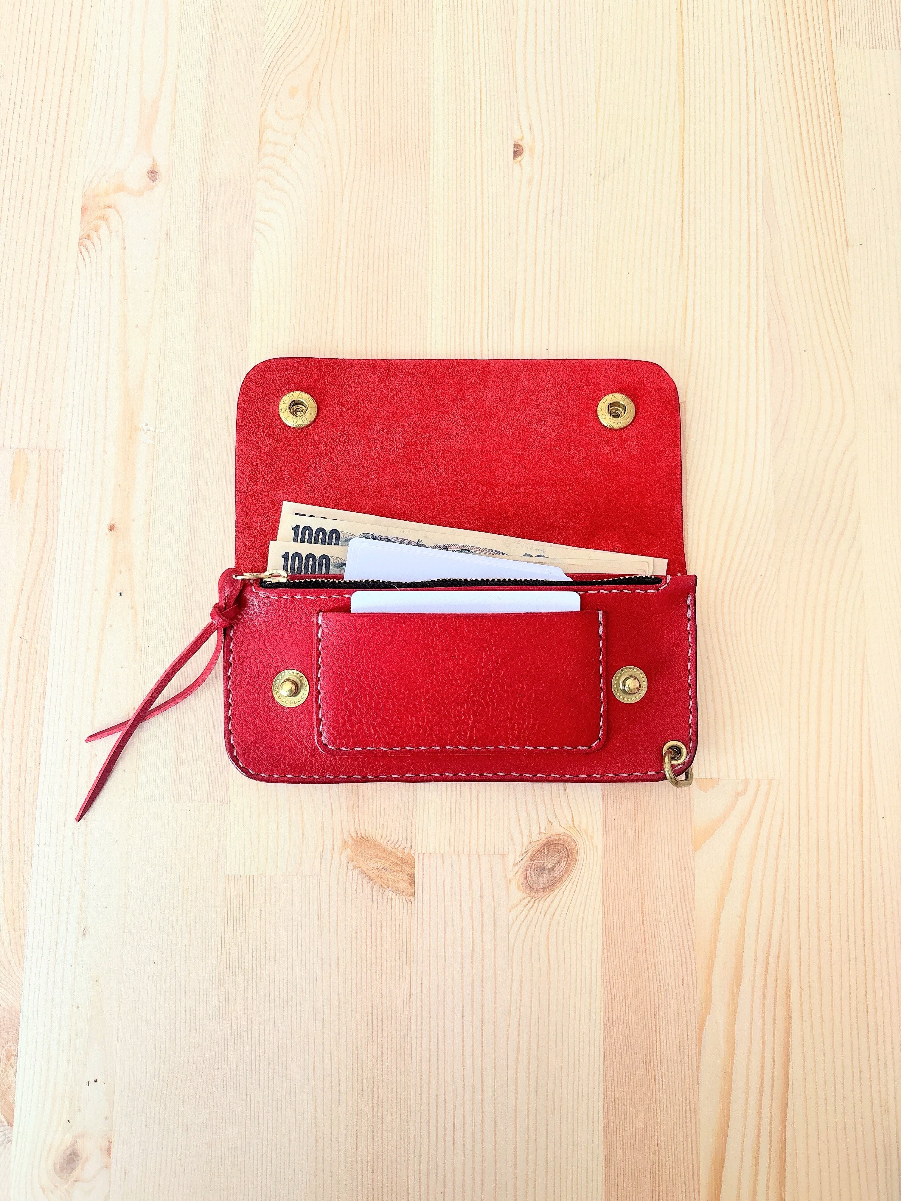 どことなくチープさがありつつイタリアンレザーのシボ革で上品さもあるトラッカーウォレットに仕立てました。